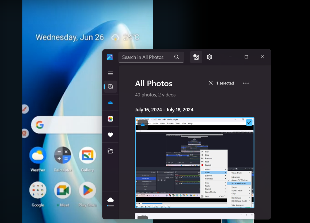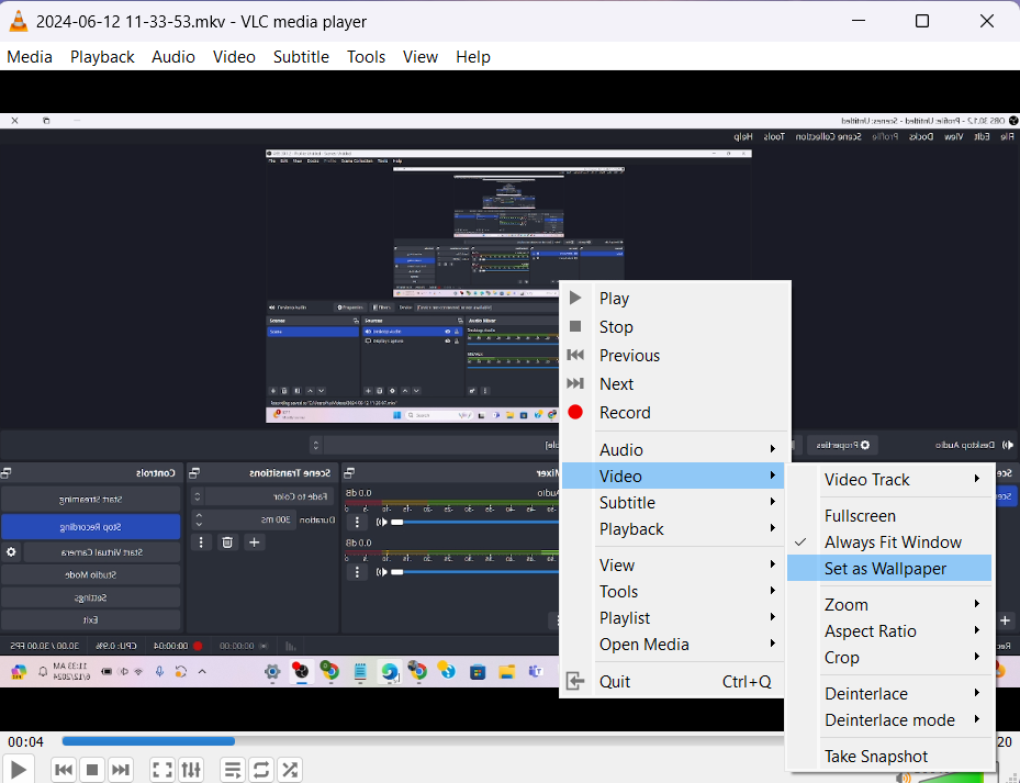 you can set your desktop wallpaper with video using VLC Media Player. VLC Media Player is free and its capable of playing all sorts of video/audio formats. here is the insertion about how to set video wallpaper using VLC Media Player on Windows 11. but one thing about VLC Media player , that it plays video is full screen mode, you can use the start button , Windows toolbar but not the desktop icons and shortcuts.